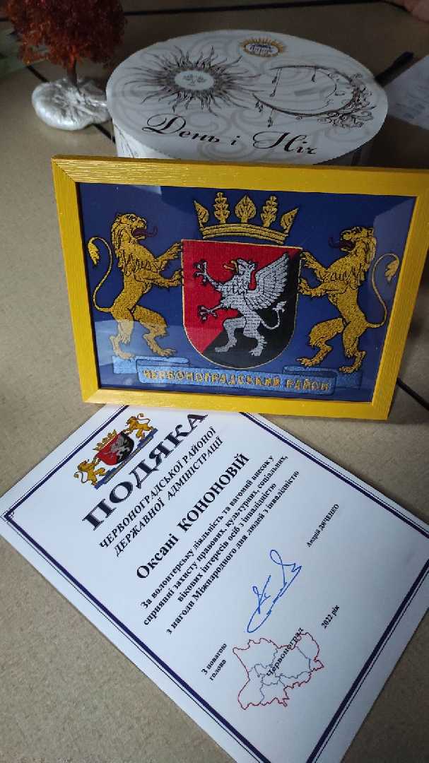 В ході зустрічі представникам районної асоціації заступник начальника Червоноградської РВА вручив подяки Червоноградської РВА за волонтерську діяльність та вагомий внесок у сприянні захисту правових, культурних, соціальних, вікових інтересів осіб з інвалідністю з нагоди Міжнародного дня людей з інвалідністю.