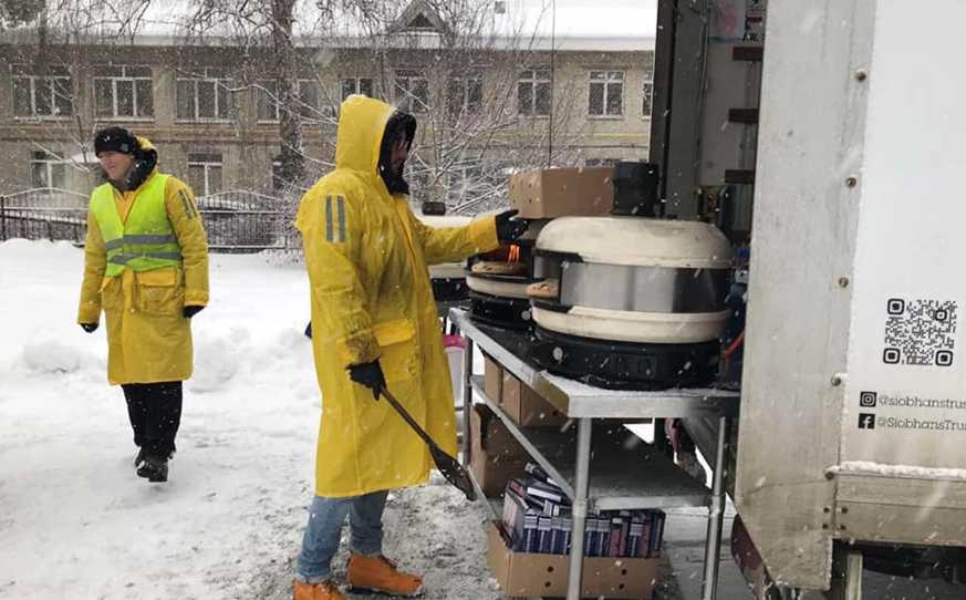 У межах акції «Піца на колесах» представники благодійної організації «Siobhans Trust» подорожують Україною зі спеціально обладнаним фургоном, де готують піцу для місцевих жителів та внутрішньо переміщеним особам. Мета акції - підтримати моральний дух українців, які переживають війну.