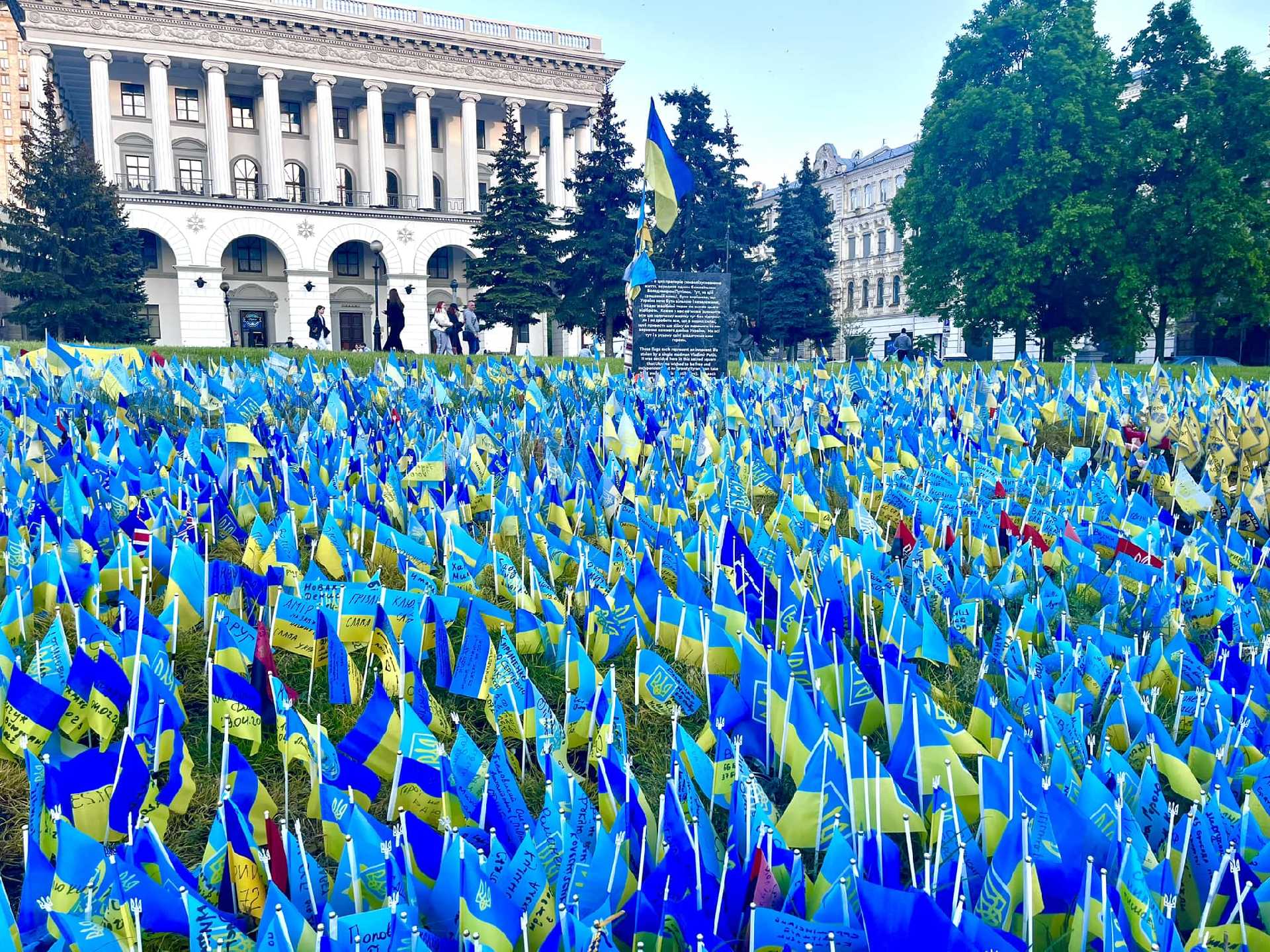 На фото прапорці на Майдані Незалежності із іменами воїнів, які віддали своє життя, захищаючи Україну.