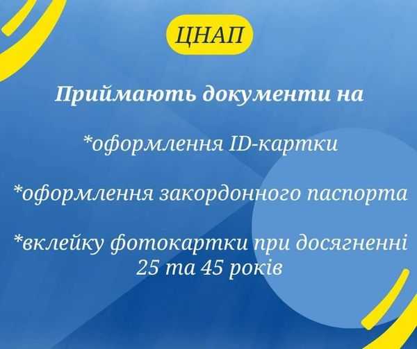 ЦНАПи приймають документи тільки на вклейку фотокартки у паспорт при досягненні 25-ти та 45-ти років, на оформлення паспортів громадянина України або для виїзду за кордон, та здійснюють їх видачу.