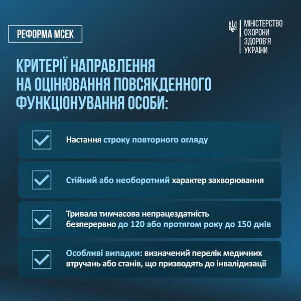 З 1 січня 2025 року в Україні запроваджується нова система оцінювання повсякденного функціонування особи, яка замінює медико-соціальну експертизу. Реформа спрямована на підвищення прозорості та ефективності процесу, а також на забезпечення орієнтованості на потреби кожної особи.