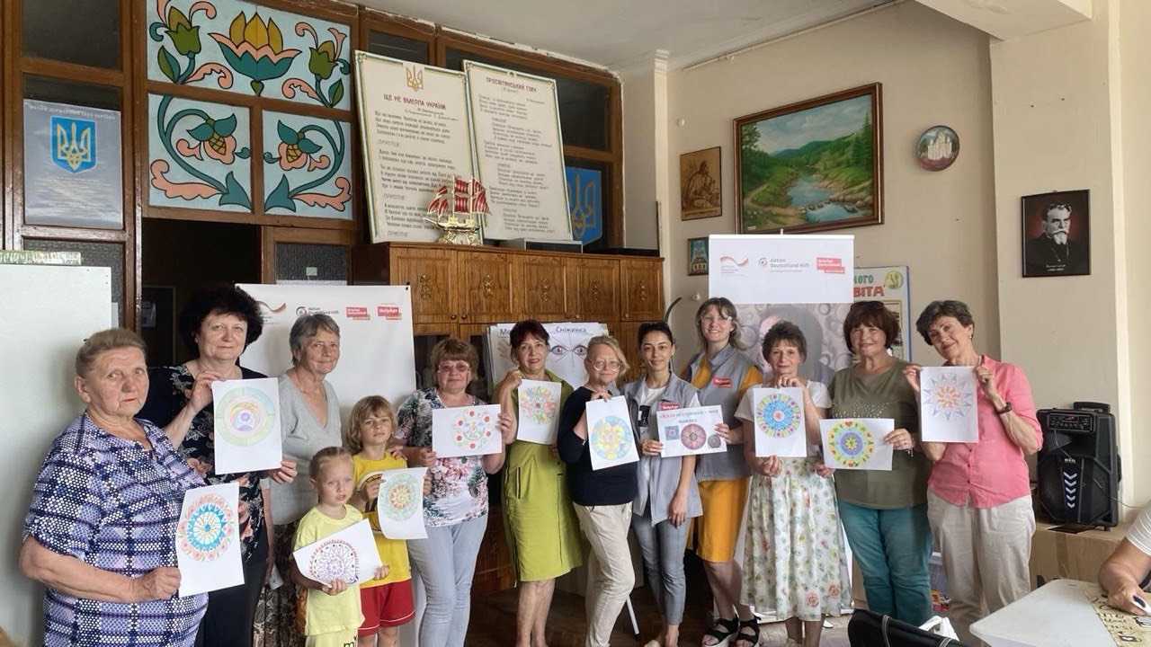 Для людей поважного віку було організовано заняття з елементами сенсорної терапії: слухання звуків, вправи на уяву та художнє самовираження. Тематичні зустрічі під назвами «Шелест вітру» та «Світло у вікні» створили простір для емоційного розвантаження, занурення у приємні спогади та символічного позбавлення тривог.