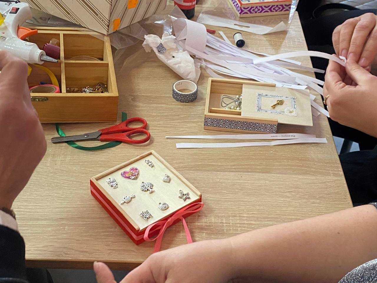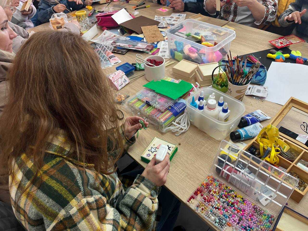 Учасники власноруч створювали персоналізовані «скарбнички радості». Використання елементів різних фактур та кольорів дозволило кожному відобразити власний внутрішній стан, трансформуючи особисті переживання у творчу енергію.