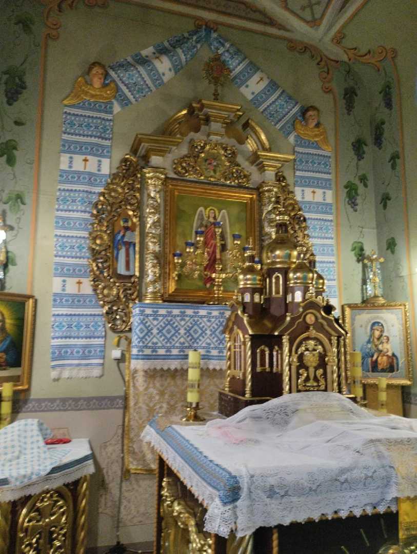 До старшої обстанови церкви належать царські ворота - дерев’яні, різьблені, покриті позолотою, на них - 4 мальовані клейма з євангелістами, над ними два мальовані клейма – ангела і Богородиці. По боках намальовані образи Василія Великого та Івана Золотоустого. Образи над царськими та дияконськими воротами, образ Архистратига Михаїла у вівтарній частині, переносний місійний образ Архистратига Михаїла, образ Серця Ісусового та образ Ісуса і Бога – Отця, образ Пресвятої Богородиці «Одигитрія», дерев’яний різьблений кивот у вигляді шафки – каплиці, Плащаниця, Євангеліє та інші твори мистецтва, які потребують окремого дослідження.