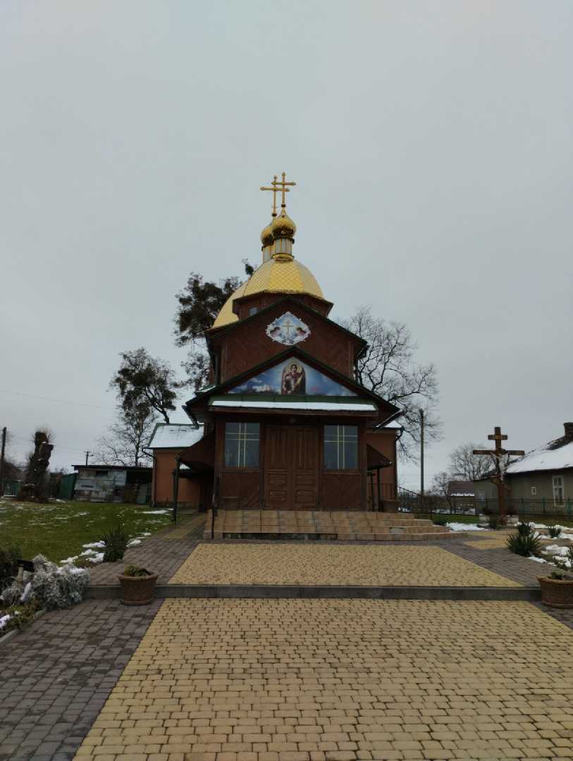 Церква Святого Архистратига Михаїла - дерев’яна тризрубна триверха споруда з високим восьмериком нави, вкритим банею з ліхтарем і маківкою увінчані металевими хрестами. Такі ж високі, тільки вужчі, восьмерики здіймаються з двосхилих дахів вівтаря і бабинця. Будівля стоїть на цегляному підмурівку, у плані витягнута вздовж осі схід-захід. Такої форми святині набула, очевидно, після розбудови бабинця (тепер він приблизно удвічі більший за площею від оригіналу) і прибудови до нього великого рівно широкого заскленого ганку на двоє дверей. У північних стінах нави та бабинця є лише два вікна, а в південних – чотири. Вікна – дерев’яні автентичні, почленовані імпостам, пофарбовані в коричневий колір. Коробки вікон нави – тафлеві, лаковані. Будівлю церкви оперізує піддашшя, що опирається на виступи зрубу бабинця і нави. Стіни дерев’яні, зрублені із соснових брусів товщиною 15 см оббиті дерев’яними планками «під ялинку». В спорудженні церкви зберігаються риси старовинного будівництва - при сполученні балок, перекриття кроков, замість цвяхів використовували кілки.