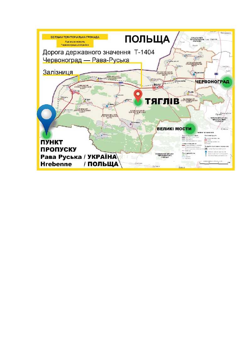 Господарський двір в с.Тяглів площею 6,4643 га (форма власності землі – комунальна; цільове призначення – землі запасу; пропоноване цільове використання – землі іншого сільськогосподарського призначення)