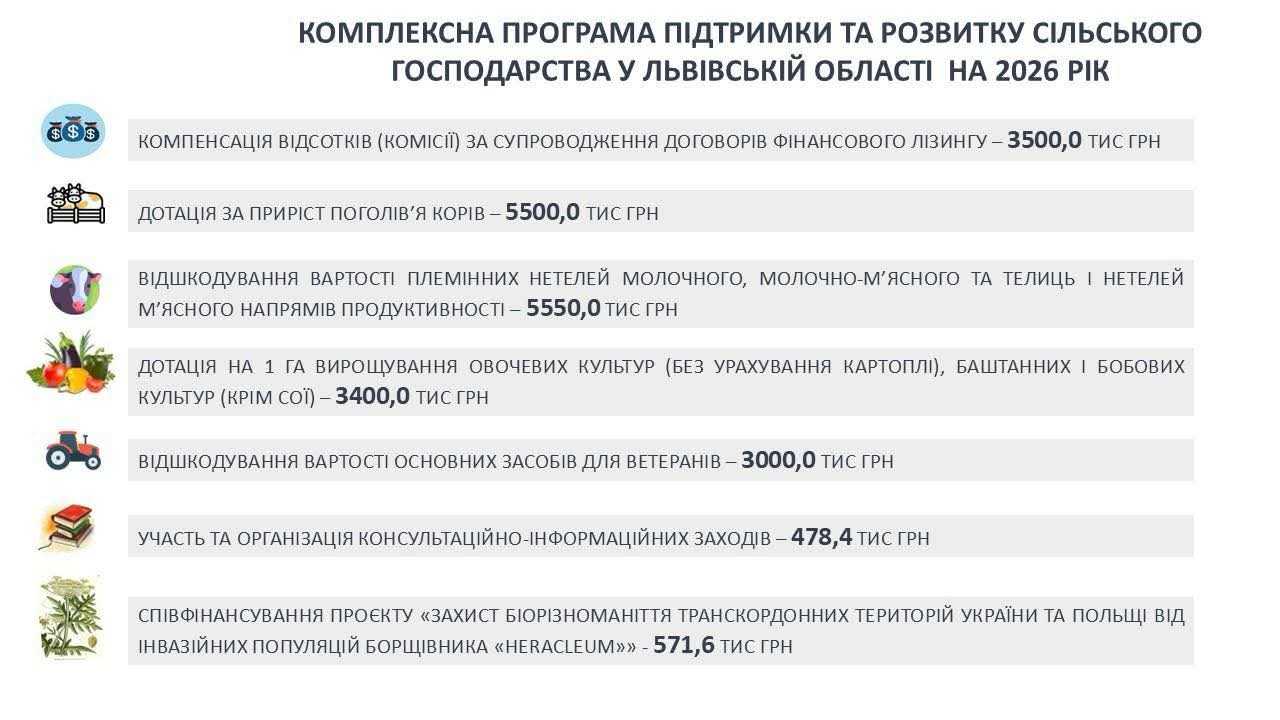 Заплановані кошти будуть спрямовані на підтримку фермерів, розвиток виробництва, відновлення сільських територій та підвищення стійкості агросектору в умовах воєнних і кліматичних викликів.
