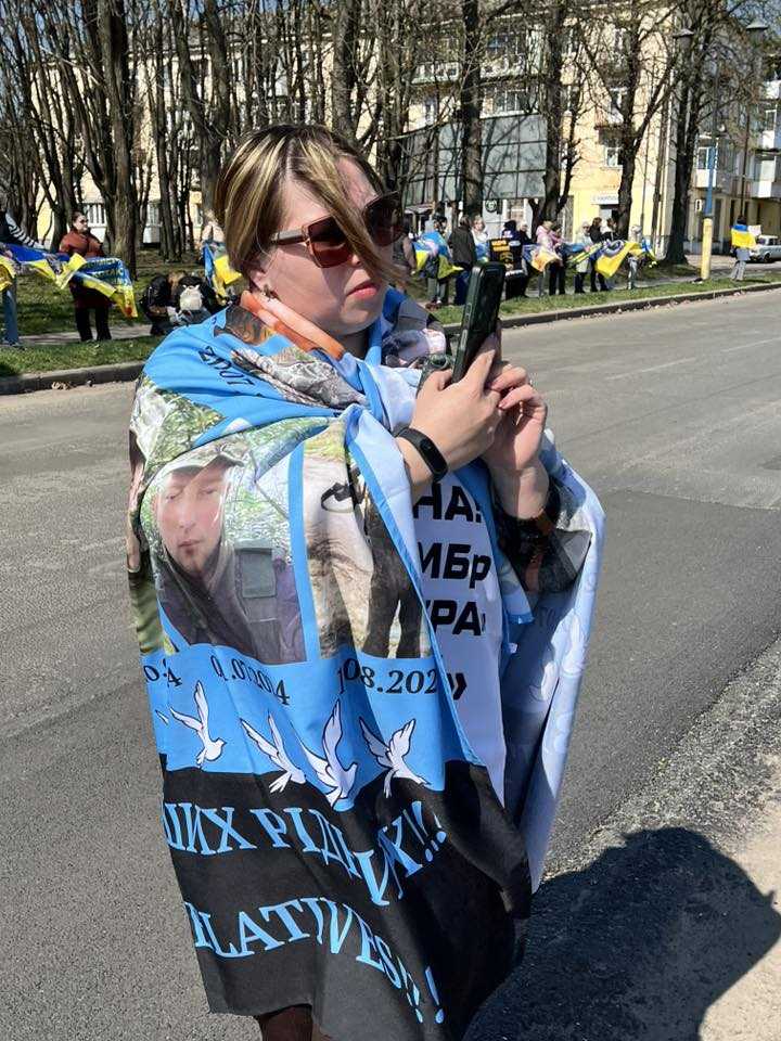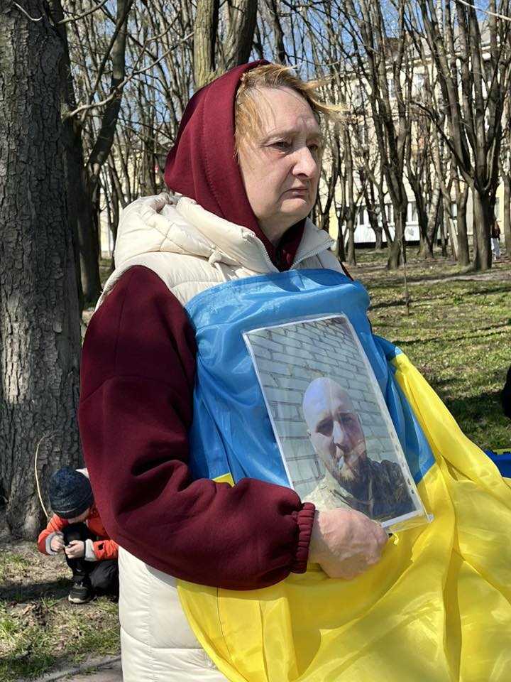 Кожна світлина в руках учасників уособлює історію мужності та виснажливе очікування, що триває для цих родин місяцями й роками.