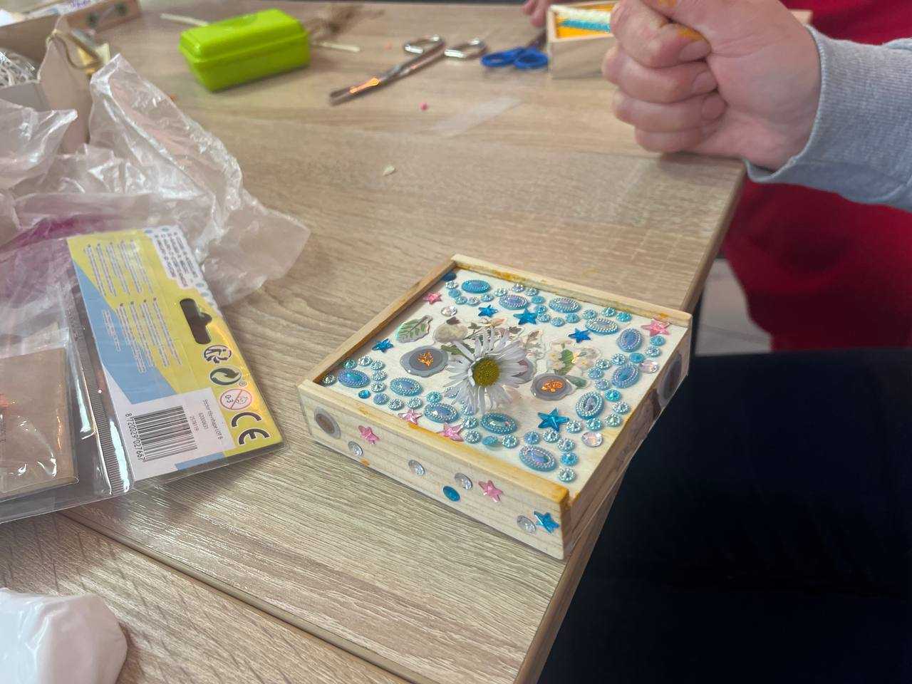 Учасники власноруч створювали персоналізовані «скарбнички радості». Використання елементів різних фактур та кольорів дозволило кожному відобразити власний внутрішній стан, трансформуючи особисті переживання у творчу енергію.
